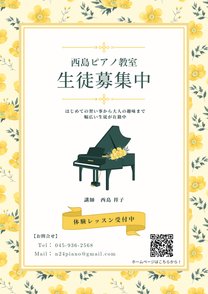 西島ピアノ教室のホームページは、こちらから!